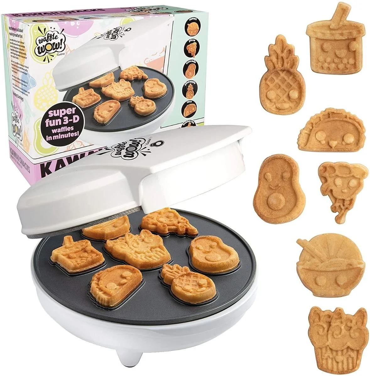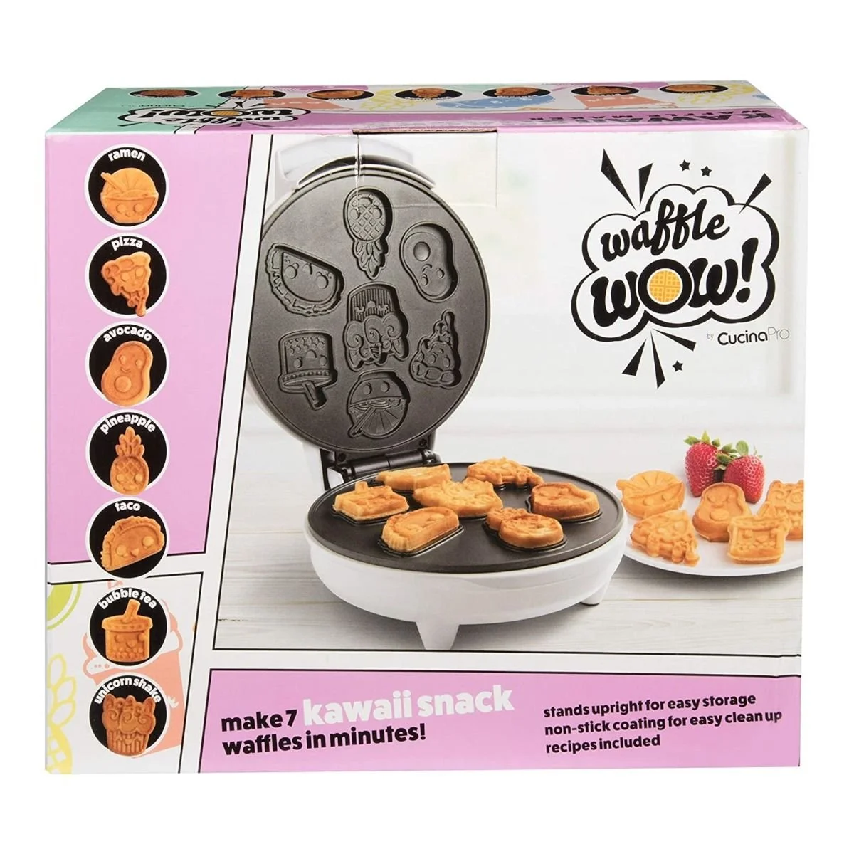 Make a charming breakfast that will thrill adults and children alike with the CucinaPro Kawaii Snacks Waffle Maker. This waffle maker is designed with 7 unique molds, including a ramen, pizza, avocado, pineapple, taco, bubble tea, and unicorn shake. Each mold is designed to create crisp, clear designs, not vague blobs like other waffle makers. The unique heating elements will cook quickly and evenly, so you can whip up your mini waffles in minutes. The interior of this waffle maker is non-stick, so it easily releases waffles so you avoid messes. Whip up a breakfast your family will never forget with the CucinaPro Kawaii Snacks Waffle Maker, get yours today!Â