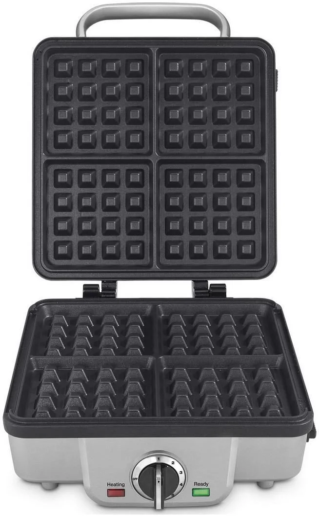- Produces four (4) waffles or pancake per batch
