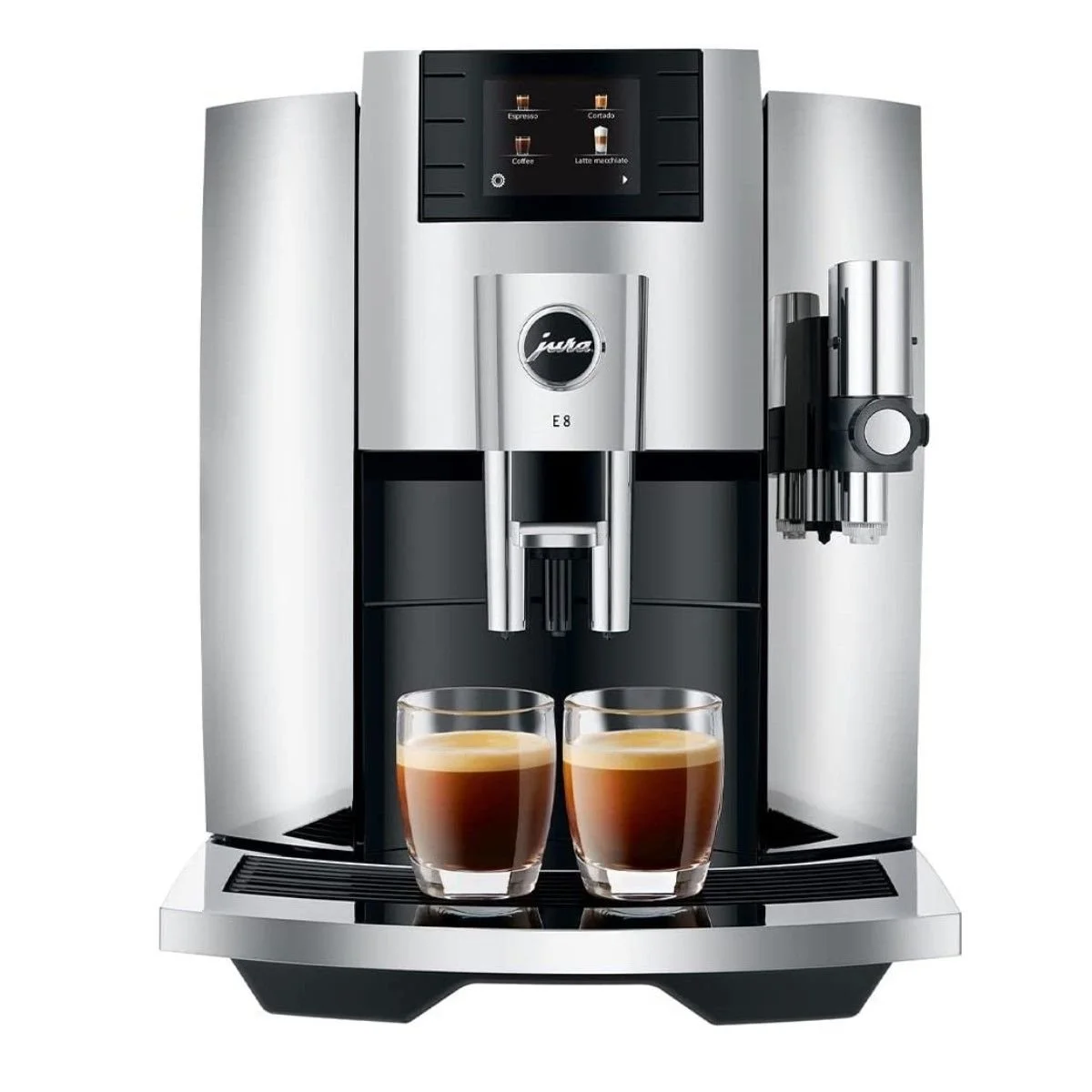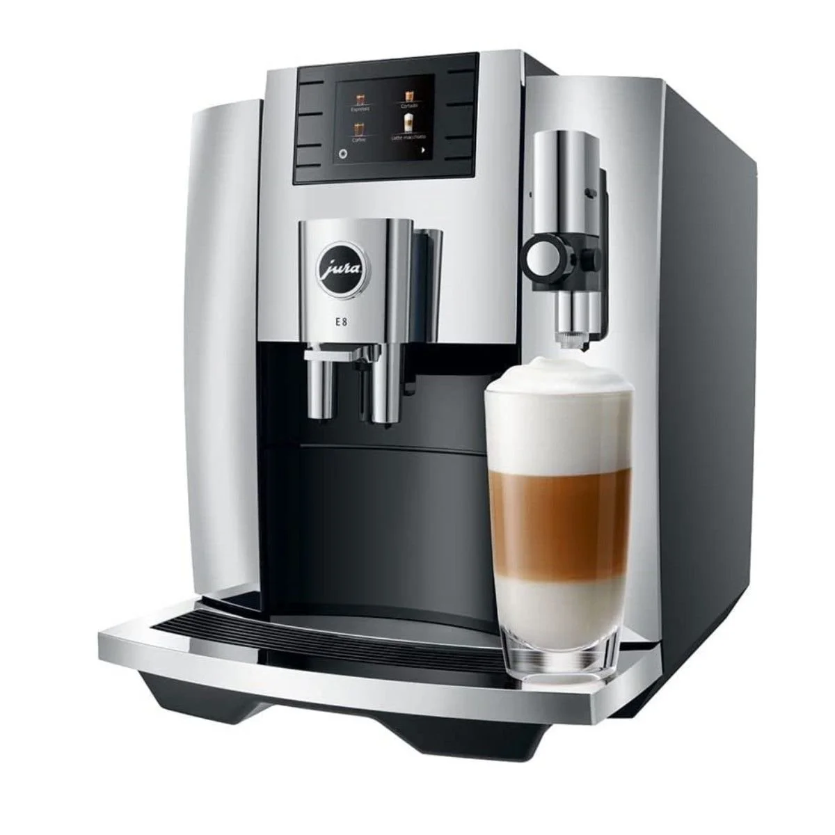 The value of a perfect shot of espresso can’t be overstated. And with the E8 Automatic Espresso Machine in Chrome from Jura, you’ll have an espresso drink every time, no matter what you like! Need hot water for tea? Need a nice cup of dark coffee? Espresso for a cappuccino or Americano? This espresso machine has features that allow you to make up to 17 specialty tea and coffee products. With this machine, versatility is the name of the game! With the built-in grinder you get the freshest coffee flavors with less acidity and flatness, meaning delicate, delicious espresso every time. This aroma grinder guarantees more aroma and consistently high grind quality. But if pre-ground beans are all you have, there’s a powder chute for those too! This coffee machine is made of highly durable plastic and metal and features chrome front paneling with bright, easy-to-read, touch-screen controls with images so you’re never confused. The design is stylish and elegant for any kitchen, with the modern, sleek chrome finish and black accents. The one-touch function allows you to brew up your drinks quickly and easily. An added, simple milk system cleaning operation helps ensure your machines stays clean! The included manual has full, easy-to-use instructions to get your espresso machine up and running in no time! Don’t settle for average espresso! Order your very own Chrome Jura E8 Automatic Espresso Machine today!