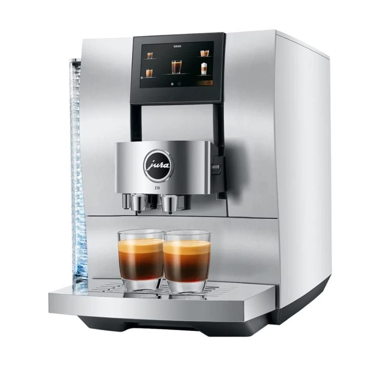 A great cup of coffee in the morning is the best thing to get you going and start your day off right. And with the Z10 Automatic Coffee & Espresso Machine in Aluminum White from Jura, you’ll have a perfect cup every time, no matter what your preference! This coffee machine is capable of producing up to 32 specialty coffee and tea products, from a full pot of coffee, to espresso, to hot water for green tea. With a built-in, adjustable coffee bean grinder, and easily customizable settings, this coffee machine is truly built to make the perfect cup no matter what you like! This maker is built with smart technology in mind, featuring WiFi connection, cold extraction processing for real cold brew coffee, intelligent preheating, 3D brewing technology for even flavor absorption, active bean monitoring, one-touch function for quick brewing, and a powder chute for pre-ground coffee. This coffee machine is made of highly durable plastic, metal and has aluminum front paneling with bright, easy-to-read, touch-screen controls with images so you’re never confused. The design is stylish and elegant for any kitchen, with a bright, aluminum white modern finish. With the built-in grinder you get the freshest coffee flavors with less acidity and flatness. All you have to do with this coffee maker is select from simple options on the screen determining what you’re making, coffee ground size, and whatever other selections for your favorite cup, and soon you’ll be brewing a perfect drink. Iced cold brews, espressos, macchiatos and more await you! A built-in rinsing system will help you keep your machine clean. The included manual has full, easy-to-use instructions to get your coffee machine up and running in no time! Know that your coffee machine will give you great cups every time. Order your very own Jura Z10 Automatic Coffee & Espresso Machine in Aluminum White today!