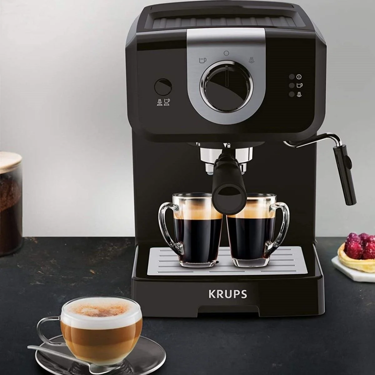Do you want deluxe, café-quality espresso drinks on command? Then you need the Cappuccino Latte Espresso Machine Opio from Krups! You shouldn’t have to give up all your money just to enjoy strong espresso shots, creamy lattes or delicate cappuccinos. Why not have access to all your favorite drinks right in your own home? This espresso machine from Krups has everything you need to make your favorite espresso, lattes and cappuccinos without any additional supplies! This machine is made to last, constructed with durable plastic and metal in a stylish silver on black finish, and it has helpful features to get you started. The machine has adjustable manual settings for high control and precision, ensuring you get your cup exactly right every time. It also has a built-in steam nozzle for making the perfect cappuccino and the 15-bar pump produces high flavor extraction with low bitterness! It comes with a professional-style tamper to pack in the coffee grounds perfectly, and a cup warmer on top so you can serve up coffee like a real barista. The removable 1.5 L water tank ensures you always have enough water for your cup. The included instructions include detailed cleaning directions that are easy to follow and only take a few minutes, so you can focus on enjoying your fresh brew. Don’t settle for average beverages! Order your very own Krups Cappuccino Latte Espresso Machine Opio today!
