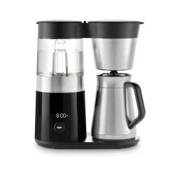 Indulge in a premium cup of coffee to start your morning right, with the Oxo On Barista Brain 9 Cup Coffee Brewer. This stainless steel automatic pour over coffee brewer boasts a large 9 cup capacity complete with a backlit LED knob to select 2-4 cups for small servings or 5-9 cups for large quantities. A convenient programmable wake-up timer allows you to set your machine to brew your favorite coffee so it is ready when you are on those slow-moving mornings. A functional brew-pause feature provides a 60-second idle time so that you can quickly enjoy a cup of joe before the brewing process is complete. The 9 Cup Coffee Brewer by Oxo utilizes premier technology with a rainmaker style showerhead that evenly disperses water across your coffee grounds filling the stainless steel carafe for an even, smooth, and full-bodied flavor. Included with the sleek carafe is a mixing tube built within, to ensure your coffee remains at its highest quality even after the brewing process has been completed. Whether it’s a nice breakfast blend on Saturday mornings or strong French roast to jumpstart your workday, you’ll enjoy the premium flavor you get with each cup of coffee made by the Oxo On 9 Cup Coffee Brewer.