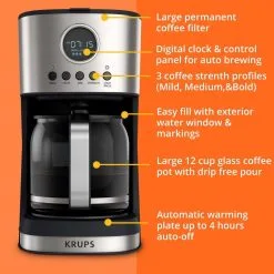 Krups Simply Brew 10-Cup Digital Drip Coffee Maker | Stainless Steel