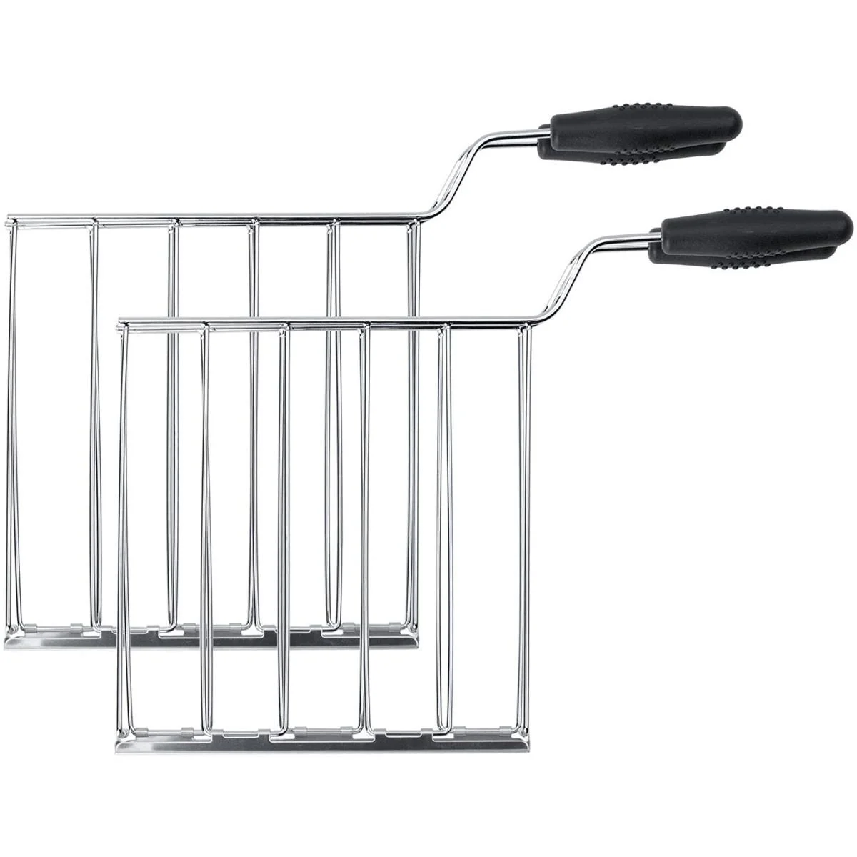 The SMEG 2-Slice Sandwich Rack is the just the accessory for making a delicious hot and toasty sandwich with your classic SMEG 2-Slice or 4-Slot toaster. The stainless steel wire rack opens so you simply place assembled sandwiches in and close the rack before placing it into the toaster slot and setting your level of toasting. The drip tray on the bottom of the sandwich rack prevents melted cheese or juices from dripping into the toaster’s crumb tray, so cleanup is quick and easy. Stay-cool plastic handles make it easy to remove the rack after toasting and then all you have to do is enjoy your fresh toasted sandwich!