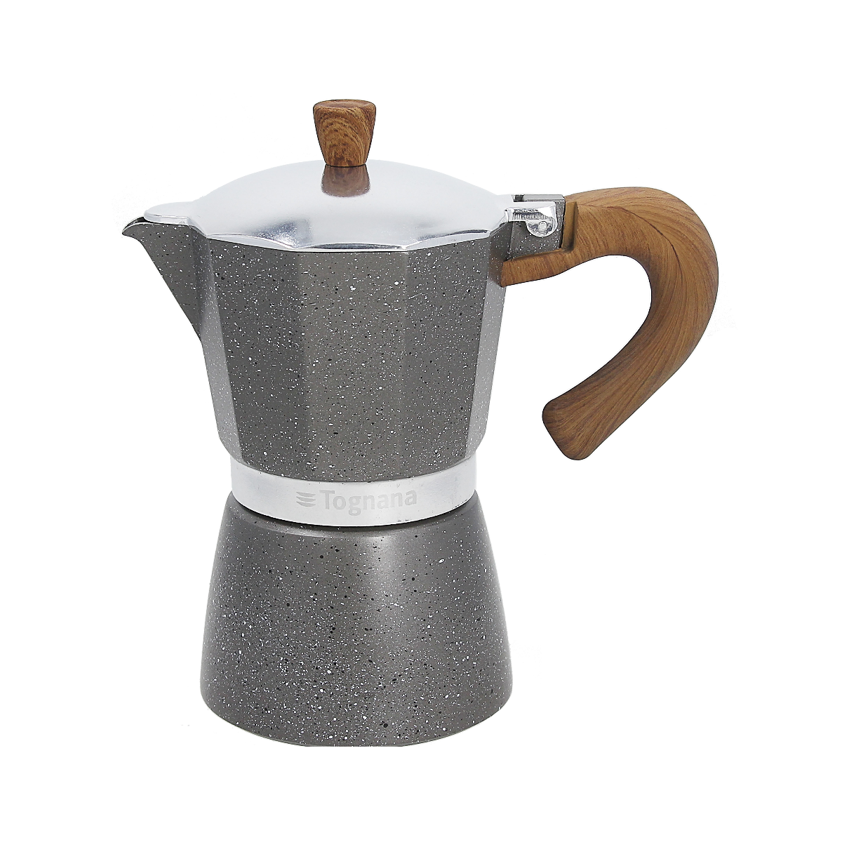 Tognana Stone & Wood Style Stovetop Coffee Maker Features: